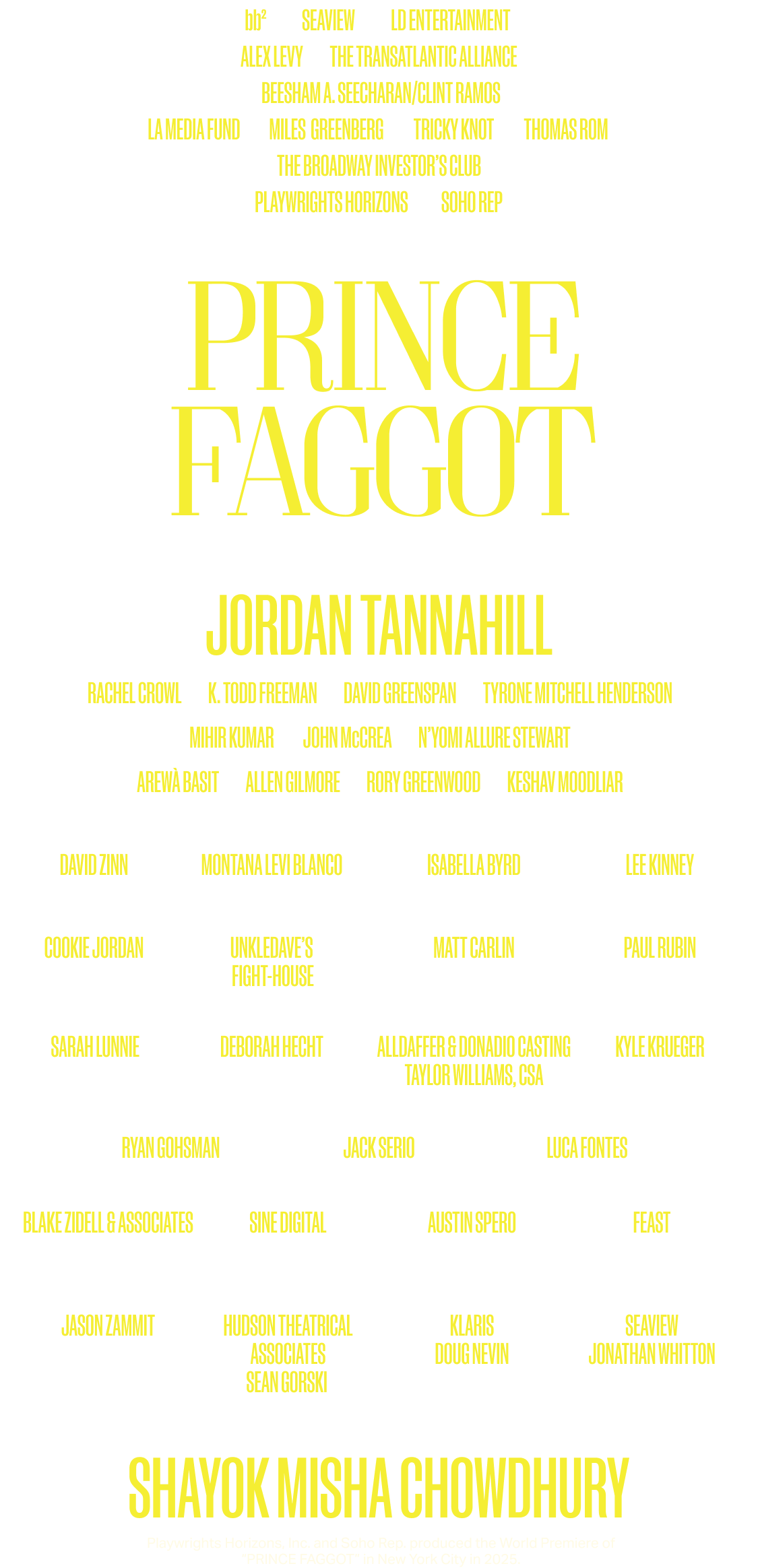 Note on text: Performer 1’s opening monologue features details from actor Mihir Kumar’s real life, mixed with fictional elements written by the playwright. Performer 4’s final monologue was inspired by a rehearsal hall interview with actress N’yomi Allure Stewart. All other text in the show including the direct address monologues is fictional, written by the playwright, and any resemblance to real events is purely coincidental.